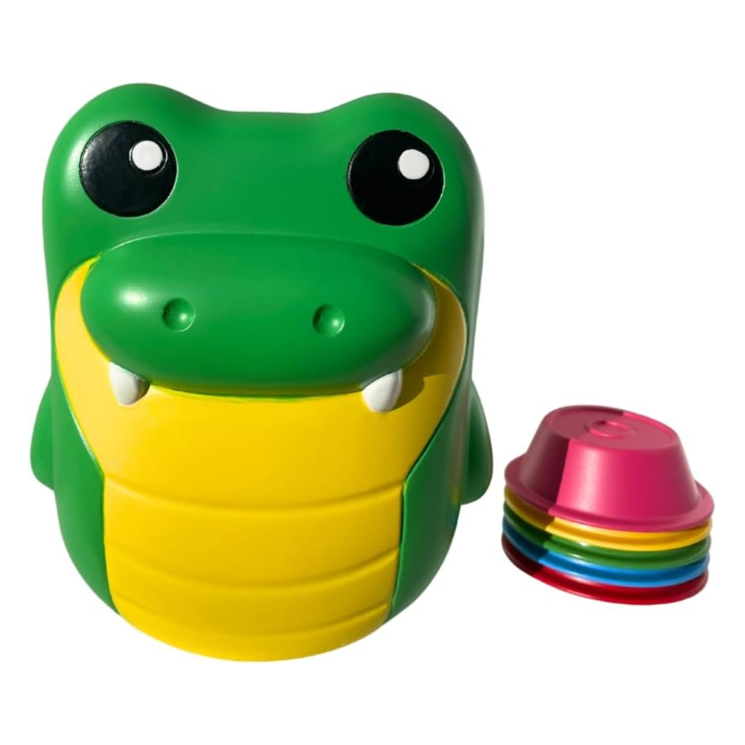 This fun interactive game comes with 1 Crocodile Toy, 5 colored nests, illustrated rules, plus 2-AAA batteries that will need to be inserted into the toy prior to playing.