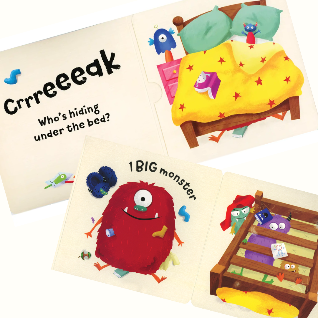 Find the silly monsters hiding here and learn to count as you go! Hide-and-Seek series: Early learning has never been so much fun! Each spread in these colorful board books has a fold-out flap with thumb-cut for easy page turning!