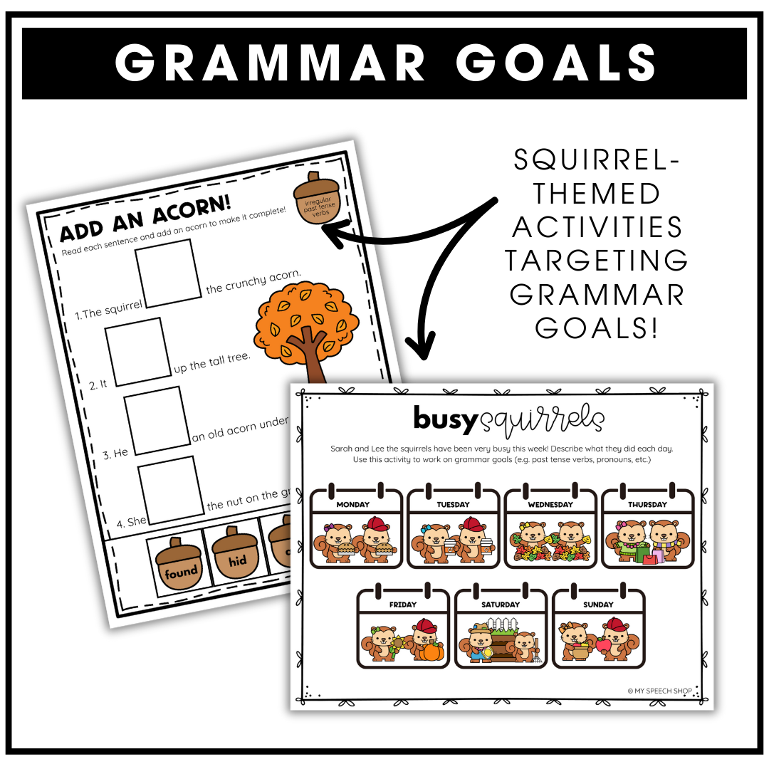 - Busy squirrels - grammar practice (verbs, pronouns)