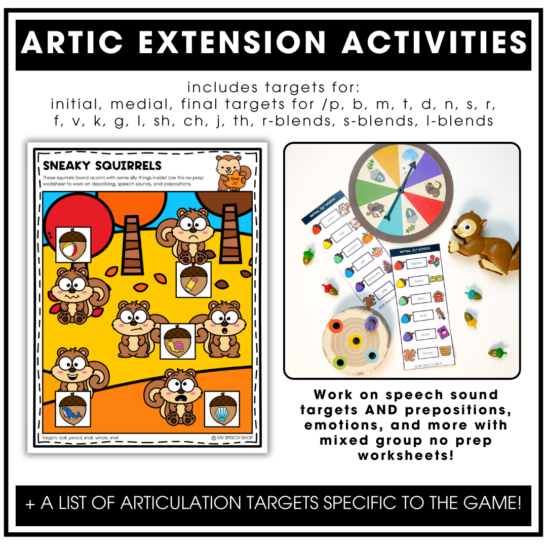 The FREE digital companion for this game has been UPDATED!! The .zip file now includes the following activities to make planning for mixed speech therapy groups easy:
